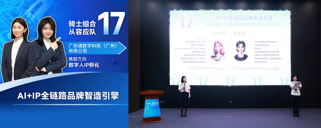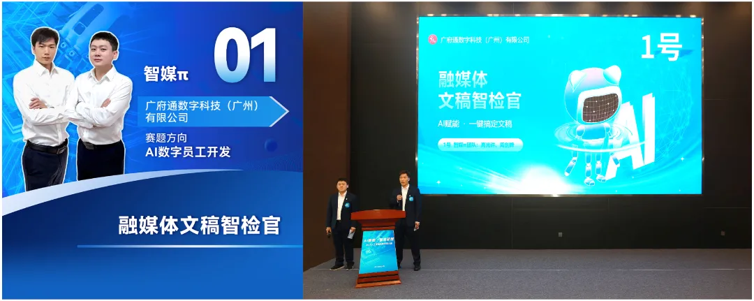 经过激烈的比拼,广府通数科公司《AI+IP全链路品牌智造引擎》作品和《融媒体文稿智检官》作品凭借出色的创新性成果和应用实践价值,分别勇夺一等奖!荣耀登顶!