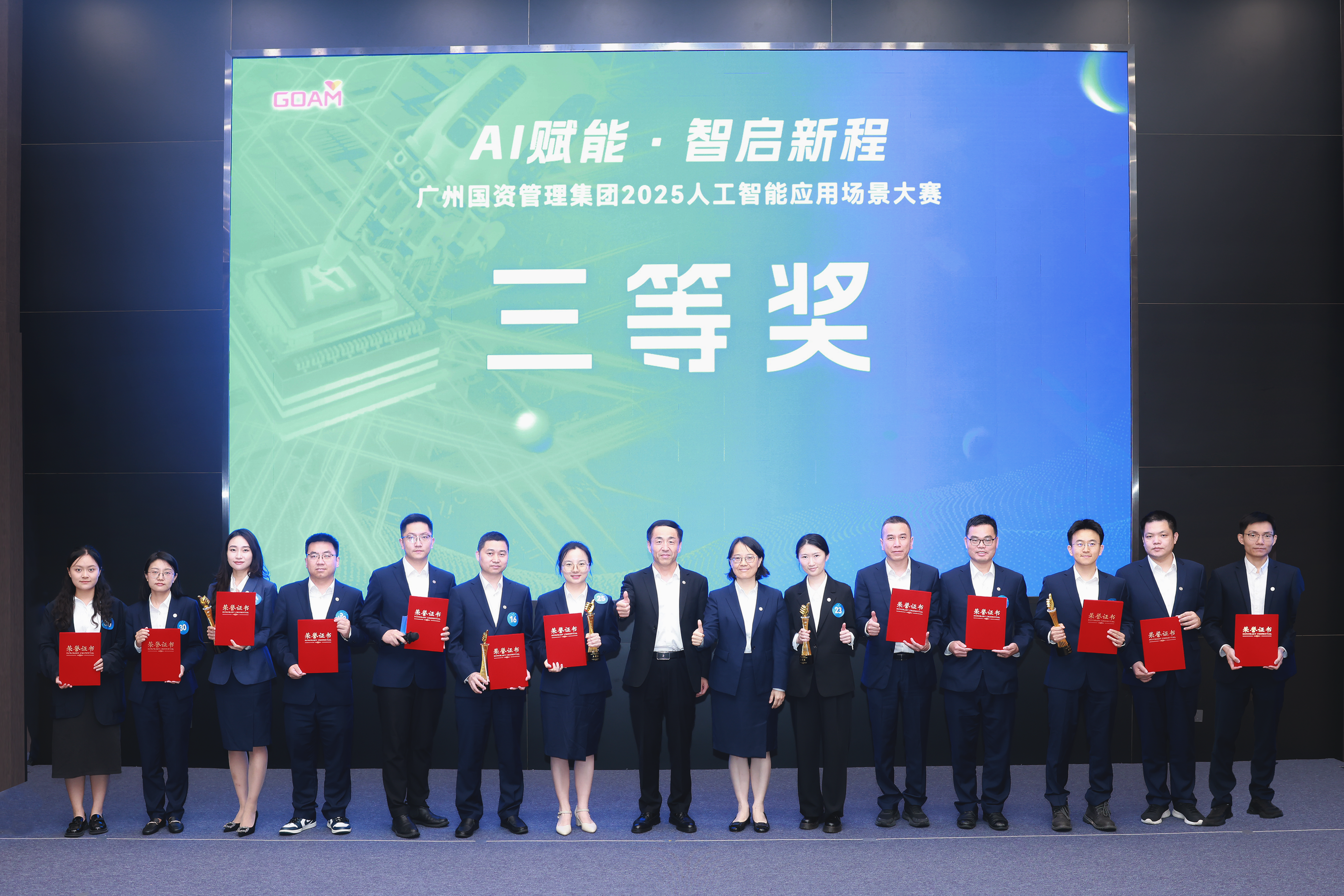 集团战略发展部《老字号产品直播》作品、广府通数科公司《速智AI解决方案》作品、鼎晟资产公司《AI驱动应收账款管理革新》作品、集团办公室《智启司忆—智能企业档案检索引擎》作品、集团纪委办公室《清风国资:AI赋能纪法宣教的创新实践》作品、集团资金财务部《AI财务智能自动流程优化机器人》作品、集团资产运营部《在线安全隐患检测AI模型》作品、集团党群工作部《党建品牌助手》作品、鼎晟资产公司《智牍-智能文档处理器》作品、集团法务合规部《E法务-企业专属法律助手》作品凭借扎实的技术基础和优秀的作品表现,分别荣获三等奖!未来可期!
